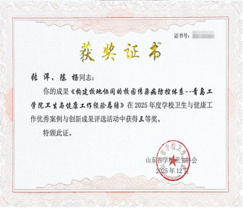 近日,山东省学校卫生协会2025年学术年会在济南召开。在本次年会的典型案例与创新成果评选中,青岛工学院表现突出,共有五项成果脱颖而出斩获殊荣,涵盖健康教育、心理健康、应急管理、传染病防控四大关键领域,充分彰显了我校在卫生与健康工作中的扎实积累与创新实力。