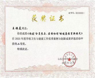 二等奖:智能制造学院王焕美——《构建“全员参与、医校协同”的健康教育新模式》;商务外语学院李帅华、徐晓燕——《“平急两用”:高校卫生应急教育融合创新模式探索与实践——以青岛工学院为例》;