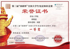 国家级奖项:第三届“国研杯”全国大学生完法知识竞赛一等奖