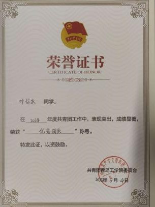 省市级荣誉:第十六届山东省大学生化工过程创新设计竞赛一等奖;第十六届山东省大学生食品安全与营养创新大赛二等奖;第二届山东省职业生涯规划大赛暨全国大学生职业生涯规划大赛选拔赛银奖;2024年度胶州市优秀学生