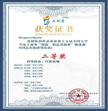 国家级奖项:第十五届全国大学生电子商务“创新、创意及创业”挑战赛全国总决赛跨境电商二等奖