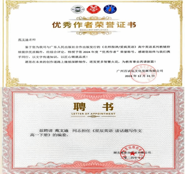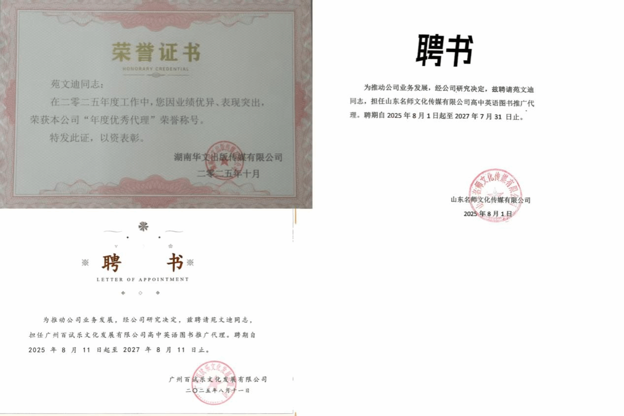 心有丘壑,眼有星辰,苑文迪始终以积极乐观的态度面对成长之路,主动向党组织靠拢,以实际行动践行青年使命。凭借卓越的专业能力,他获聘为湖北教育出版社特聘编委,同时担任多家公司高中英语图书推广优秀代理。从教辅编委到图书推广代理,从校园学子到获聘专业人才,他在多元角色中实现了专业兴趣与职业发展的深度融合,展现出出色的适应能力与清晰的职业规划,生动诠释了新时代“斜杠青年”的卓越风采,也为自己的未来勾勒出充满无限可能的美好蓝图。