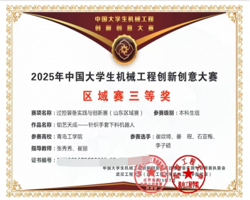 省级奖项:2024年山东省大学生科技节装备制造业创新大赛省级一等奖;2024年全国大学生英语翻译大赛省级一等奖;2025年第四届山东省高校智能机器人创意竞赛省级三等奖;2025年中国大学生机械工程创新创意大赛省级三等奖