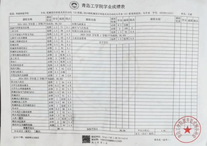 立身以立学为先,立学以笃行为本。王斌始终保持精益求精的治学态度,学业成绩稳居专业前三,扎实掌握专业核心知识,以过硬的学习能力彰显顶尖学业素养,他深谙学习之道,践行“课前预习明框架、课堂聚焦抓核心、课后复盘促提升”的科学策略,通过系统梳理知识脉络、专项攻克薄弱环节,构建起兼具系统性与实用性的专属学习体系,实现知识吸收与实践能力的双向进阶,同时深耕机械领域、聚力技术创新,秉持“研以致用”的初心潜心钻研、攻坚克难,成功斩获8项计算机软件著作权,用实打实的学术成果展现出极强的实践转化能力与成果输出能力,成为同学们眼中的标杆与榜样,让青春在创新创造中绽放光彩。
