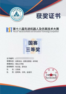 国家级奖项:第十八届先进机器人及仿真技术大赛国赛三等奖