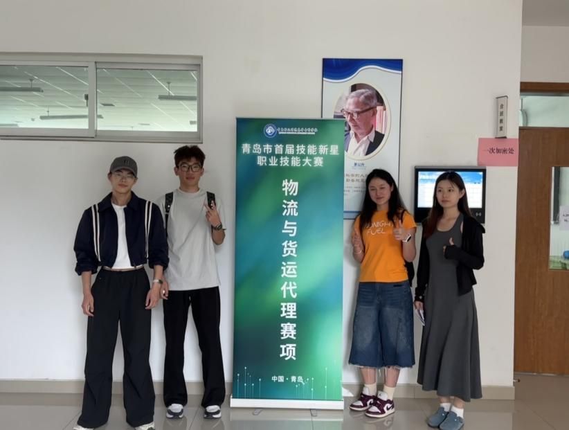 张以诺(左到右第二)参加2025年青岛市首届物流与货运代理大赛