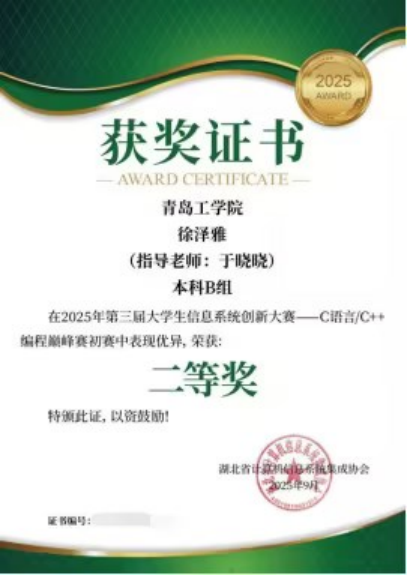 第三届大学生信息系统创新大赛二等奖。