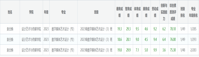袁合焕始终以踏实严谨的态度深耕学业,用稳步攀升的成绩诠释着“坚持”的力量。